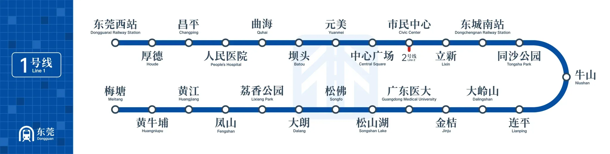 On the morning of November 28 at 9:30, the initial operation of the first phase of Dongguan Metro Line 1 officially opened. Line 1 starts from Dongguan West Station in the west and ends at Meitang Station in the east. The total length of the line is 57.99 kilometers, including 20.27 kilometers of elevated railway, 35.44 kilometers of underground railway, and 2.28 kilometers of ground railway and transition section. There are 21 stations in total along the line (13 underground and 8 elevated), 1 train depot, 1 parking lot, and 4 main substations.